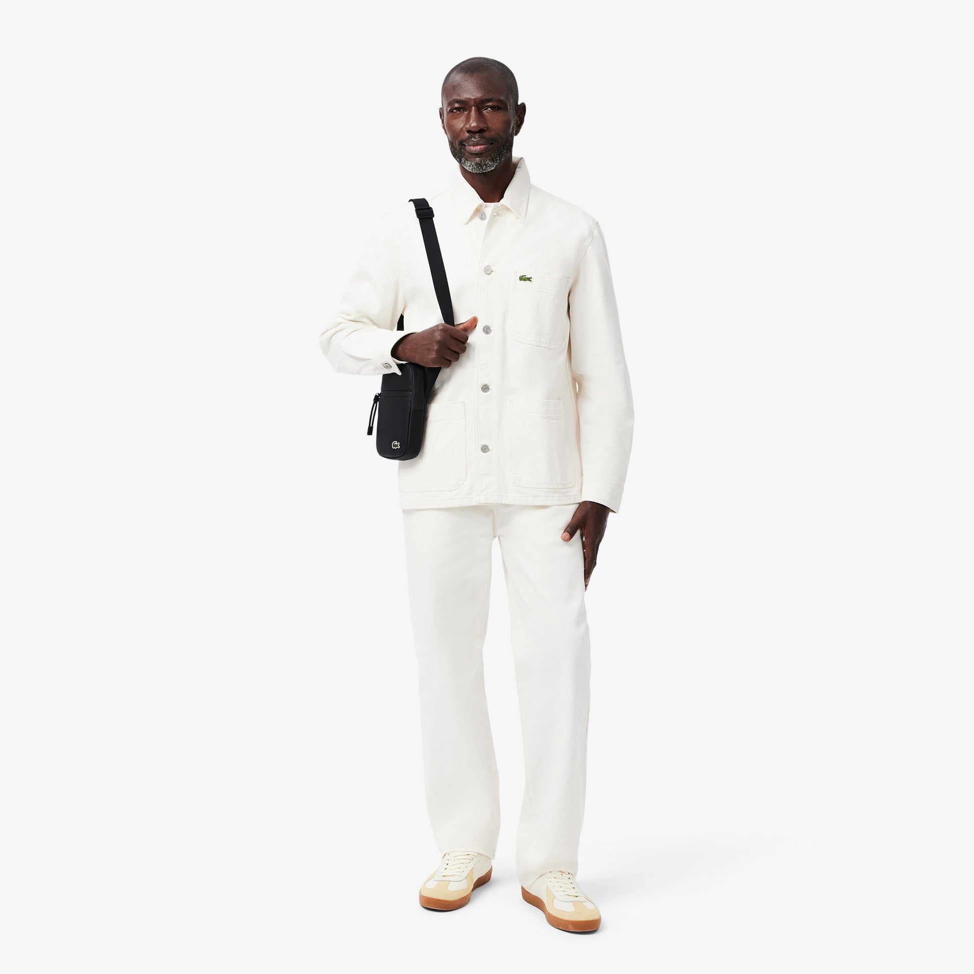 Este pequeño bolso plano hecho de lona resistente combina el carácter práctico con un aspecto urbano. Está equipada con un cierre de cremallera y varios prácticos bolsillos e incluye el emblemático cocodrilo verde bordado en pequeño