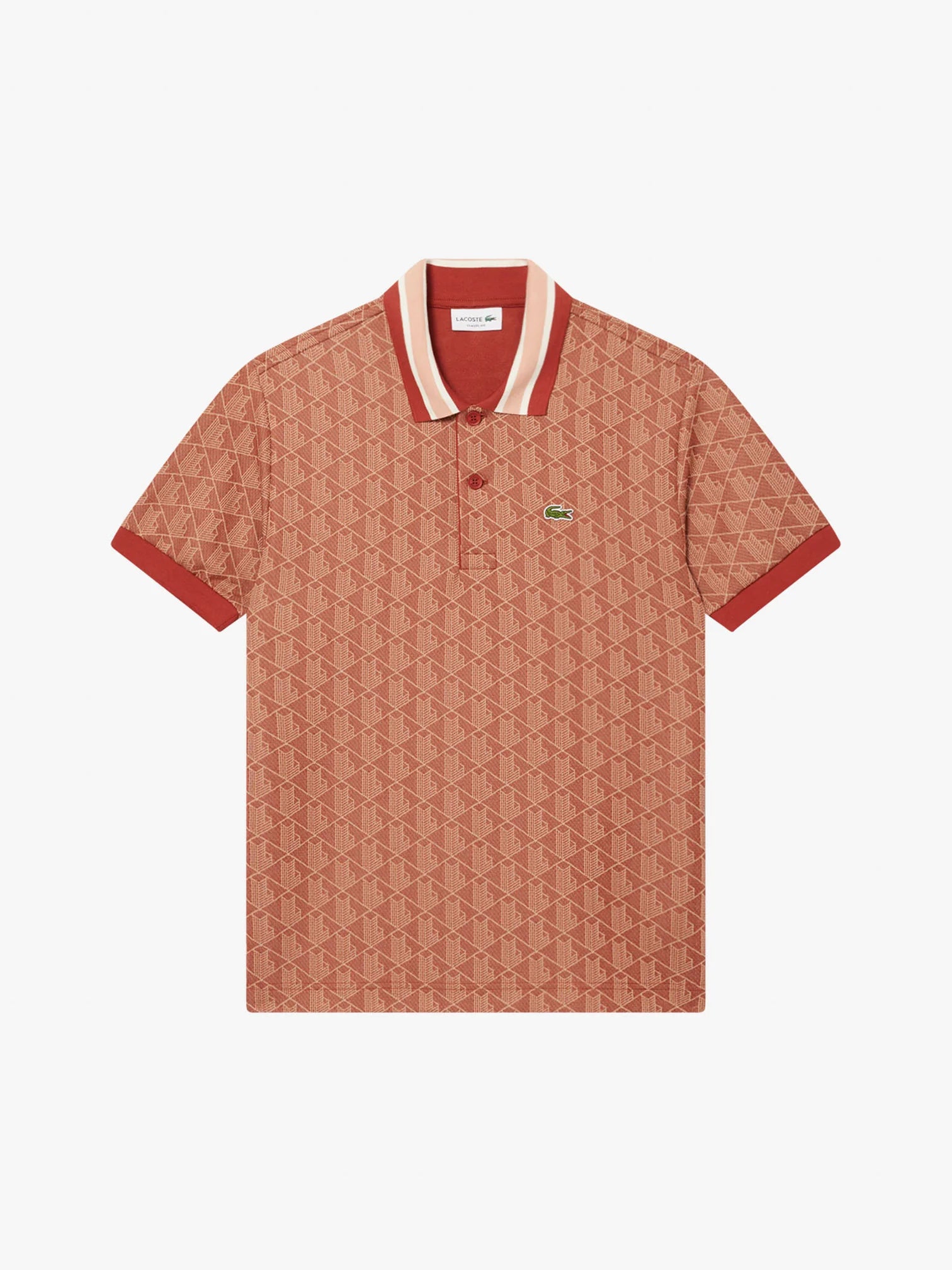 Esta camisa polo ofrece una nueva y original versión del icónico diseño creado por Lacoste en 1933. El motivo monograma de punto jacquard, el ribete acanalado y el cuello de rayas en contraste te ayudarán a destacar entre la multitud. Un diseño decididamente moderno que combina comodidad y elegancia.
