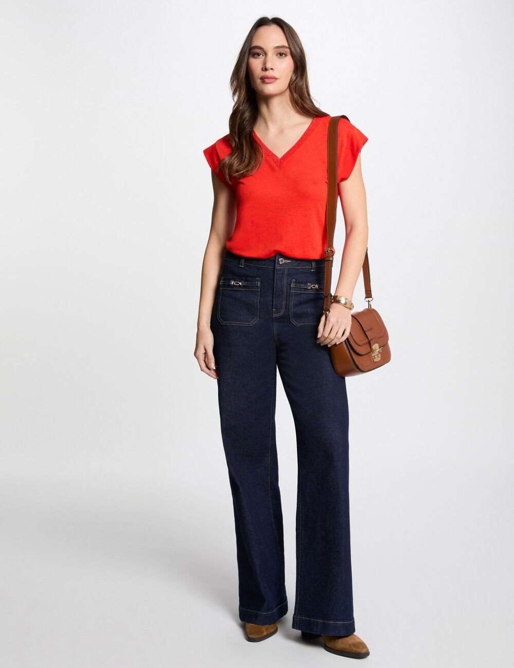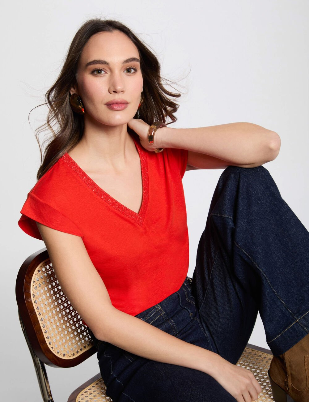 CAMISETA MANGA CORTA CON ESCOTE EN V NARANJA MUJER MORGAN 221-DAME