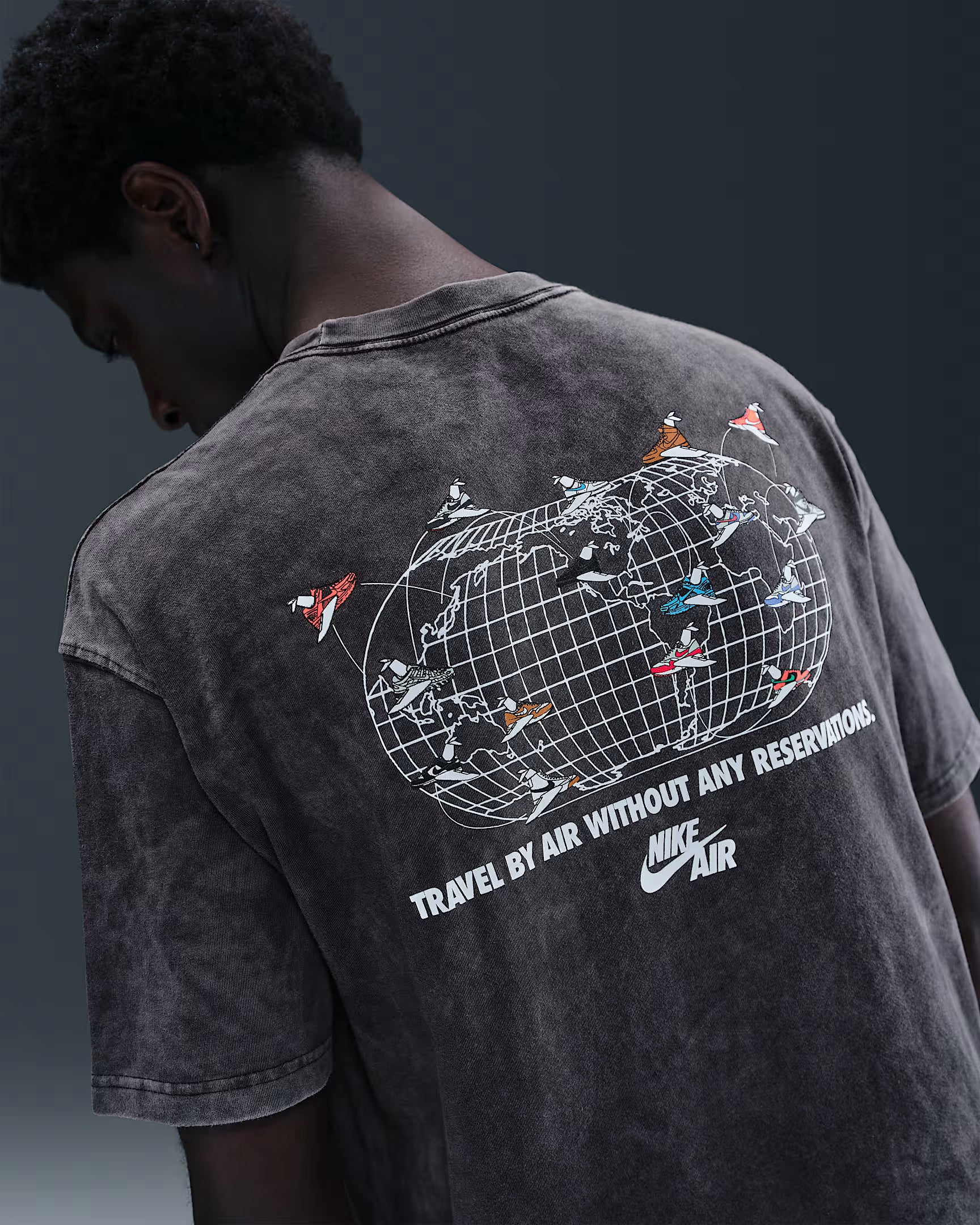 Esta camiseta tiene un estampado Air Max recuperado del archivo de Nike que se combina con un efecto lavado retro. Tiene un ajuste holgado en el cuerpo para ofrecer un look informal. Algodón de densidad media, suave y ligeramente estructurado, para aportar comodidad y durabilidad en el día a día.