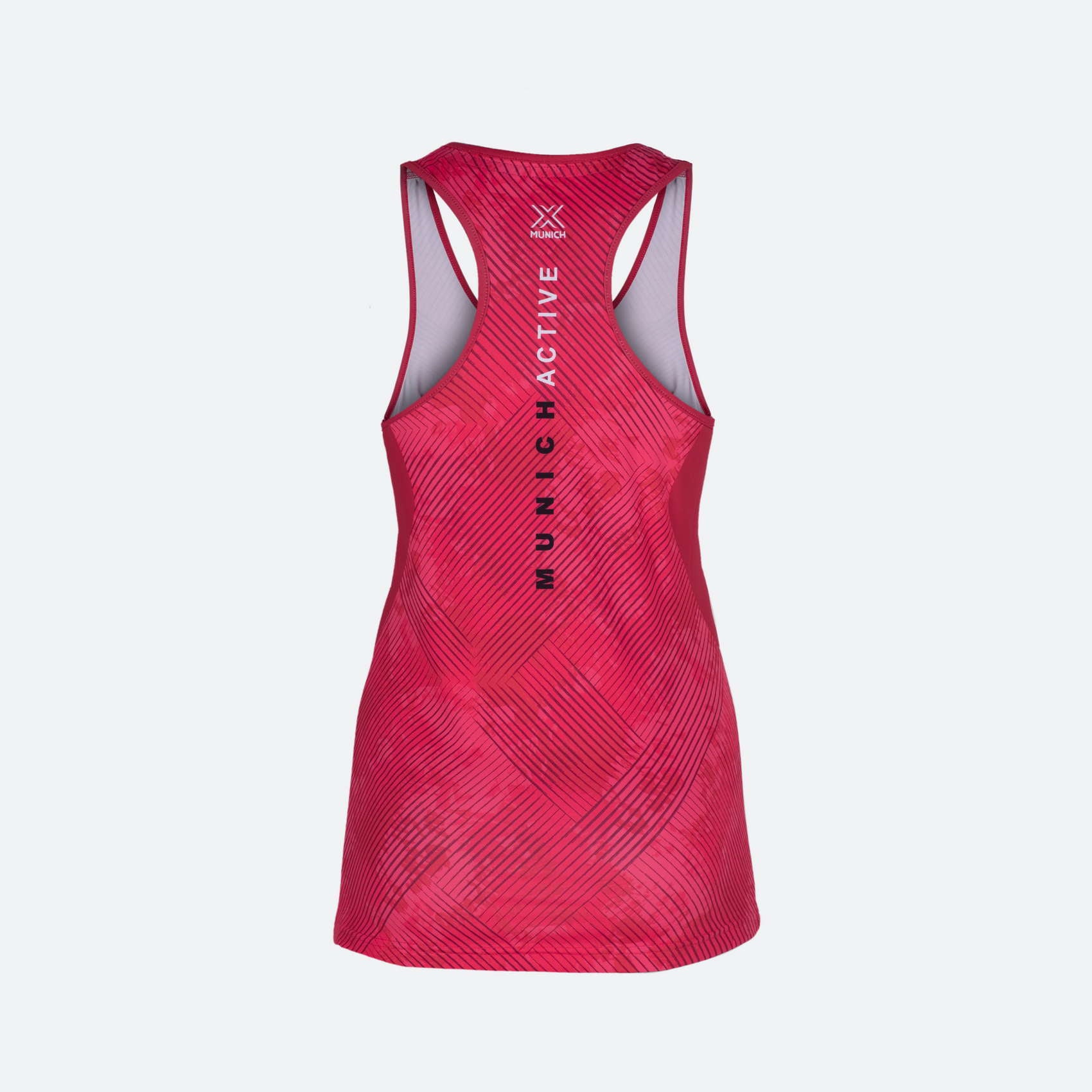 Camiseta técnica en tejido de poliéster y elastano que proporciona un ajuste óptimo y gran transpiración y secado rápido. Patrón con tirantes y espalda en forma de "T" que se adapta ergonómicamente a la espalda femenina.
