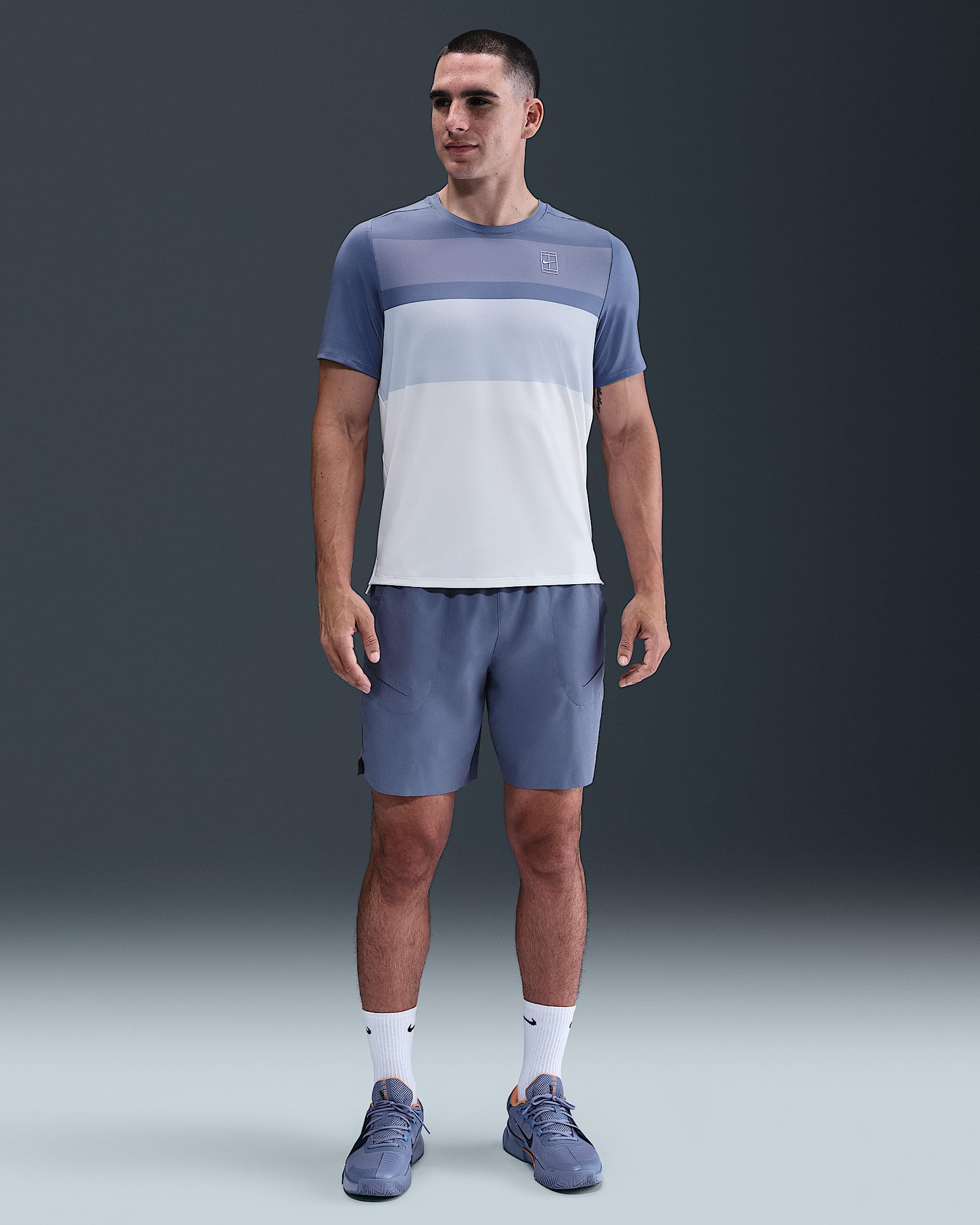 Esta camiseta Advantage de ajuste entallado te permite darlo todo en la pista con un material elástico en cuatro direcciones que capilariza el sudor. La distribución de las costuras de los hombros se ha diseñado para una mayor movilidad mientras giras y golpeas la pelota.