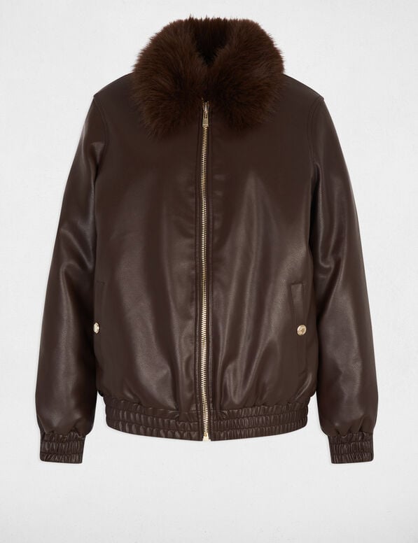 Esta chaqueta de cuero sintético encarna un estilo casual chic con un aire moderno y elegante. Su corte recto alarga delicadamente la silueta, mientras que su longitud resalta sutilmente las piernas para un efecto definido. Una prenda ideal para realzar su guardarropa urbano.