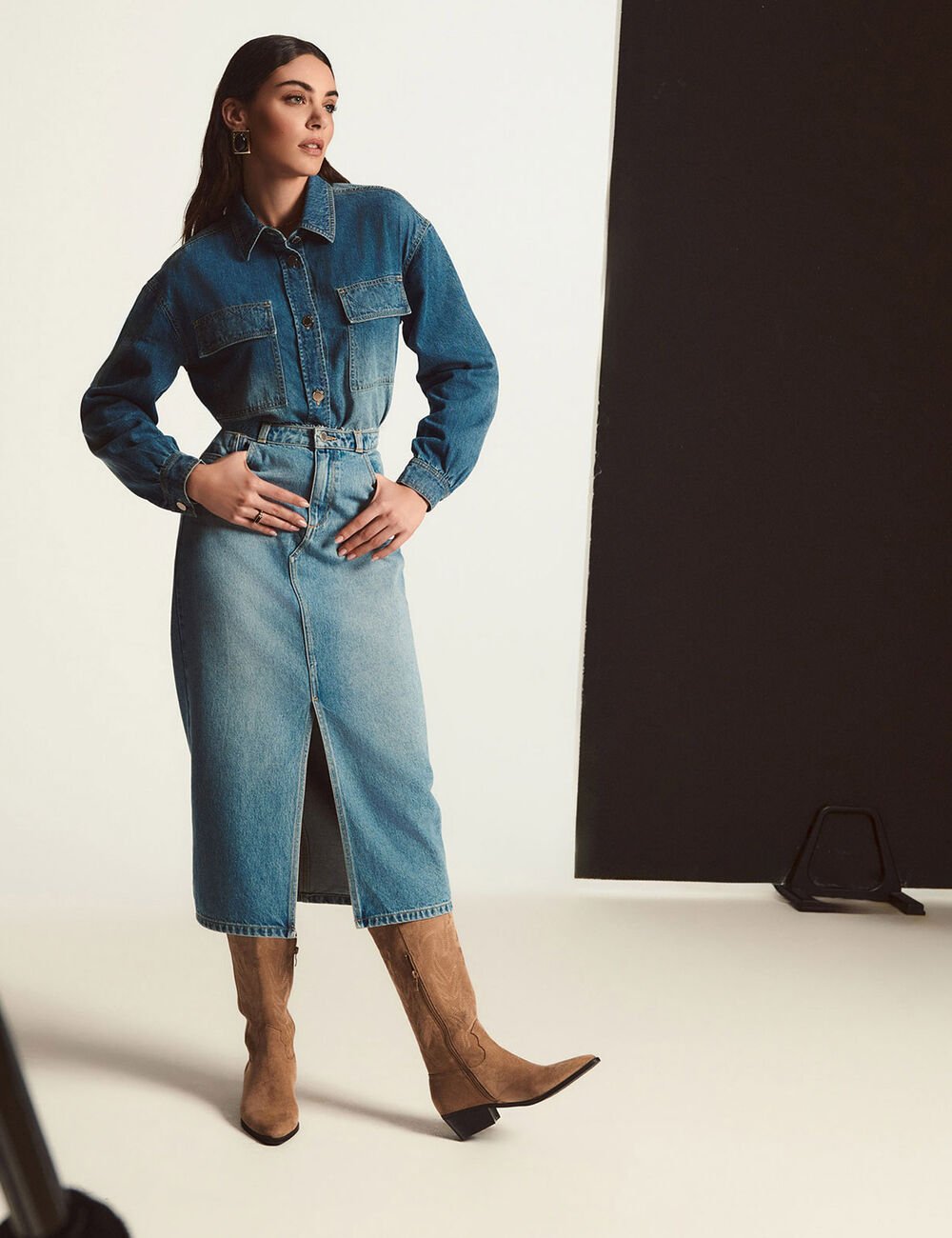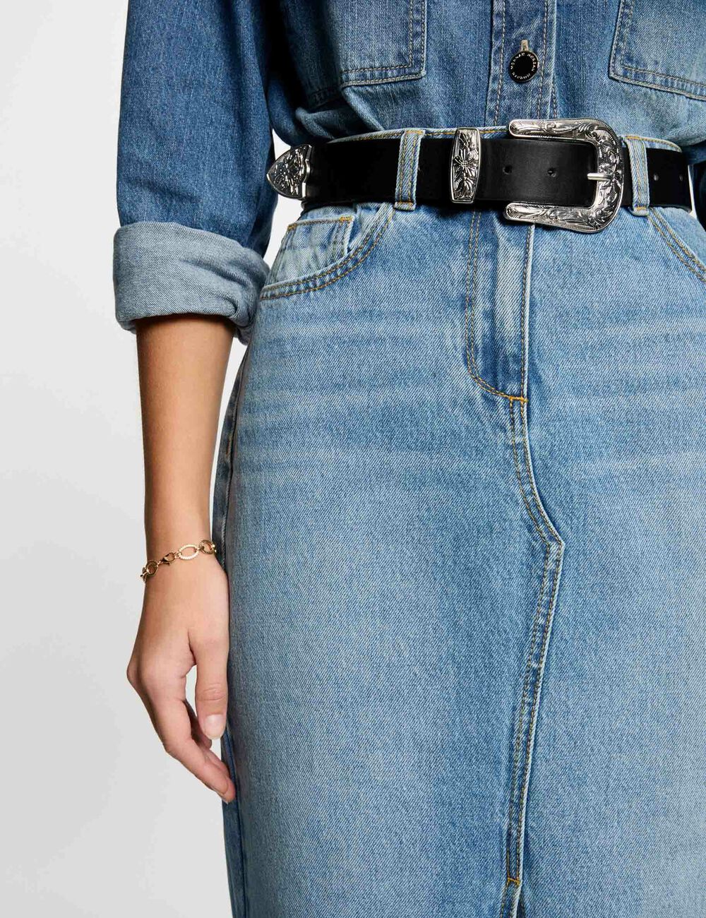 - Falda midi recta de vaquero