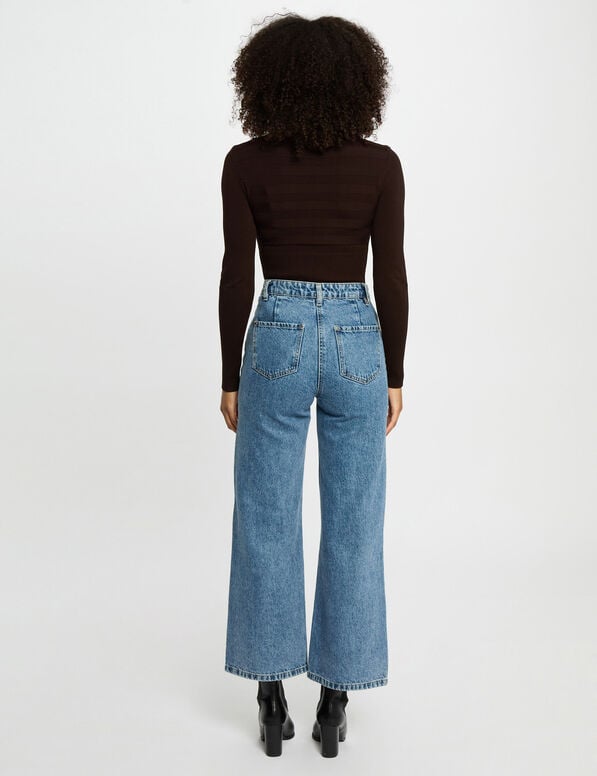 - El jersey ajustado de cuello alto combina con unos vaqueros slim de tiro alto y botines de tacón para una silueta femenina y segura.
