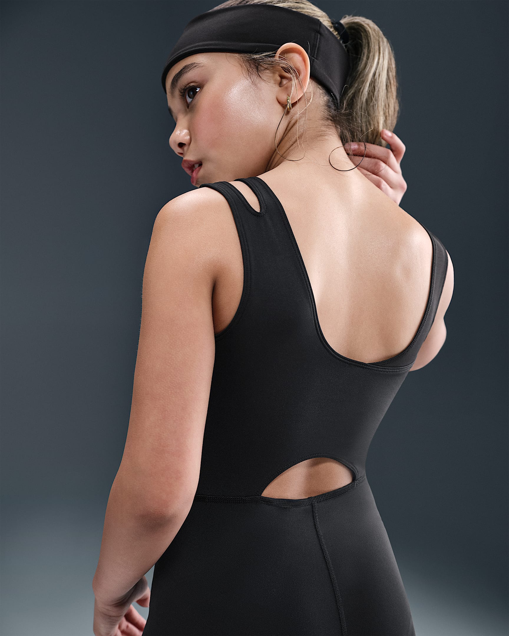 Este mono que se adapta al cuerpo permite moverse con total libertad. El tejido Knit suave y elástico se combina con nuestra tecnología Dri-FIT de capilarización del sudor para mantener la transpirabilidad y la comodidad.