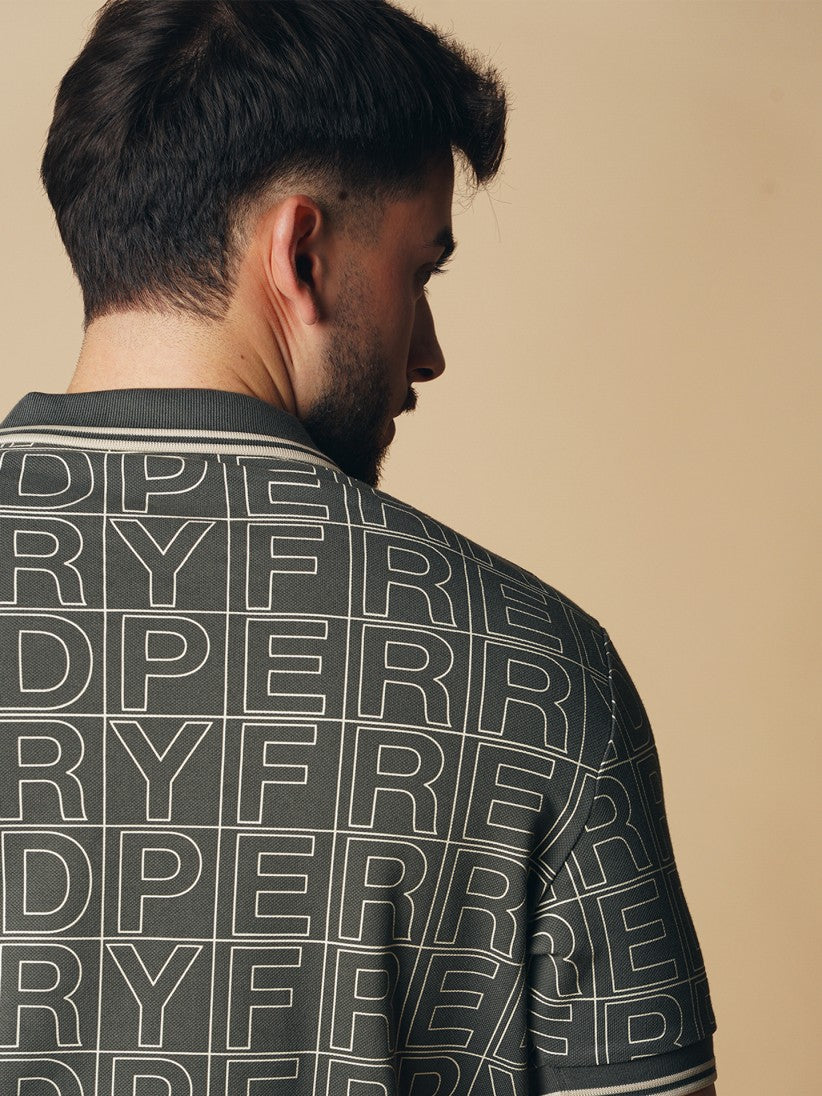 Un polo de piqué de algodón con un diseño estampado modernista inspirado en el tenis.