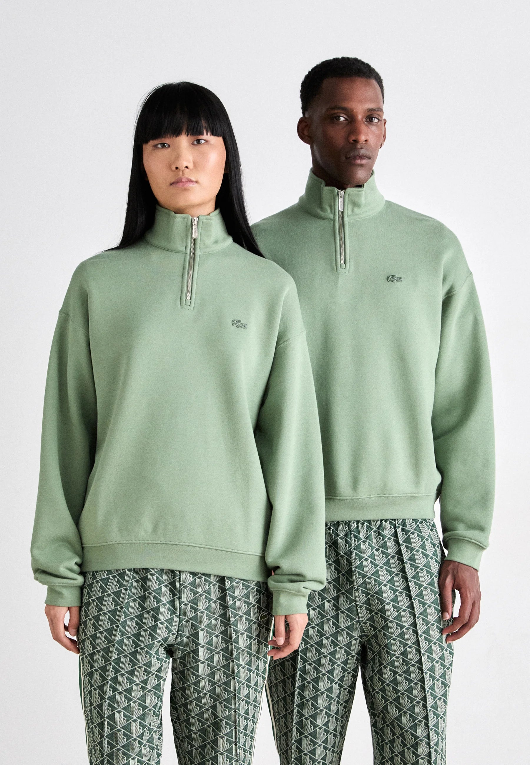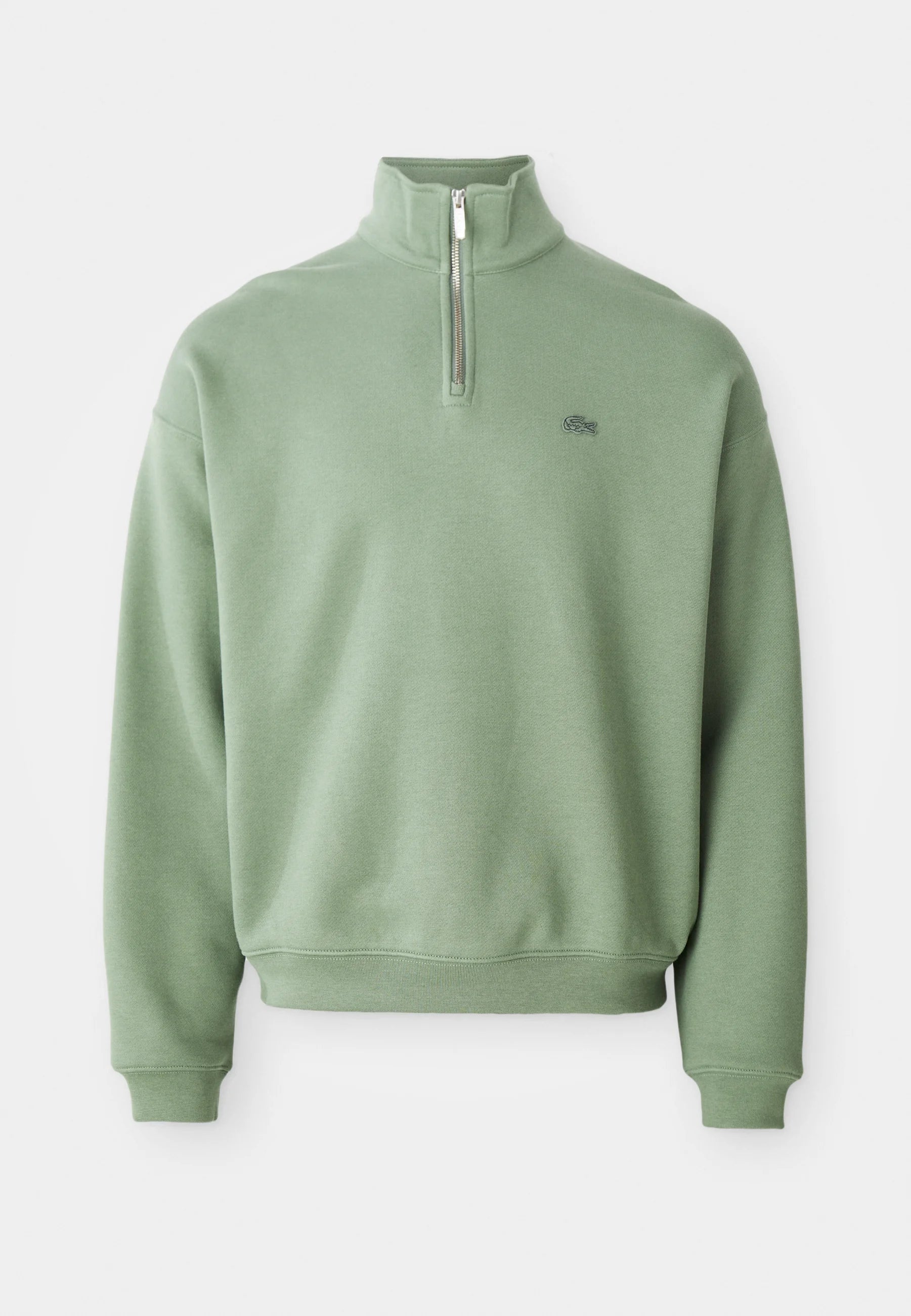 Sudadera de cuello alto en felpa de algodón grueso, que combina elegancia relajada y estilo deportivo con acabados acanalados y diseño minimalista.