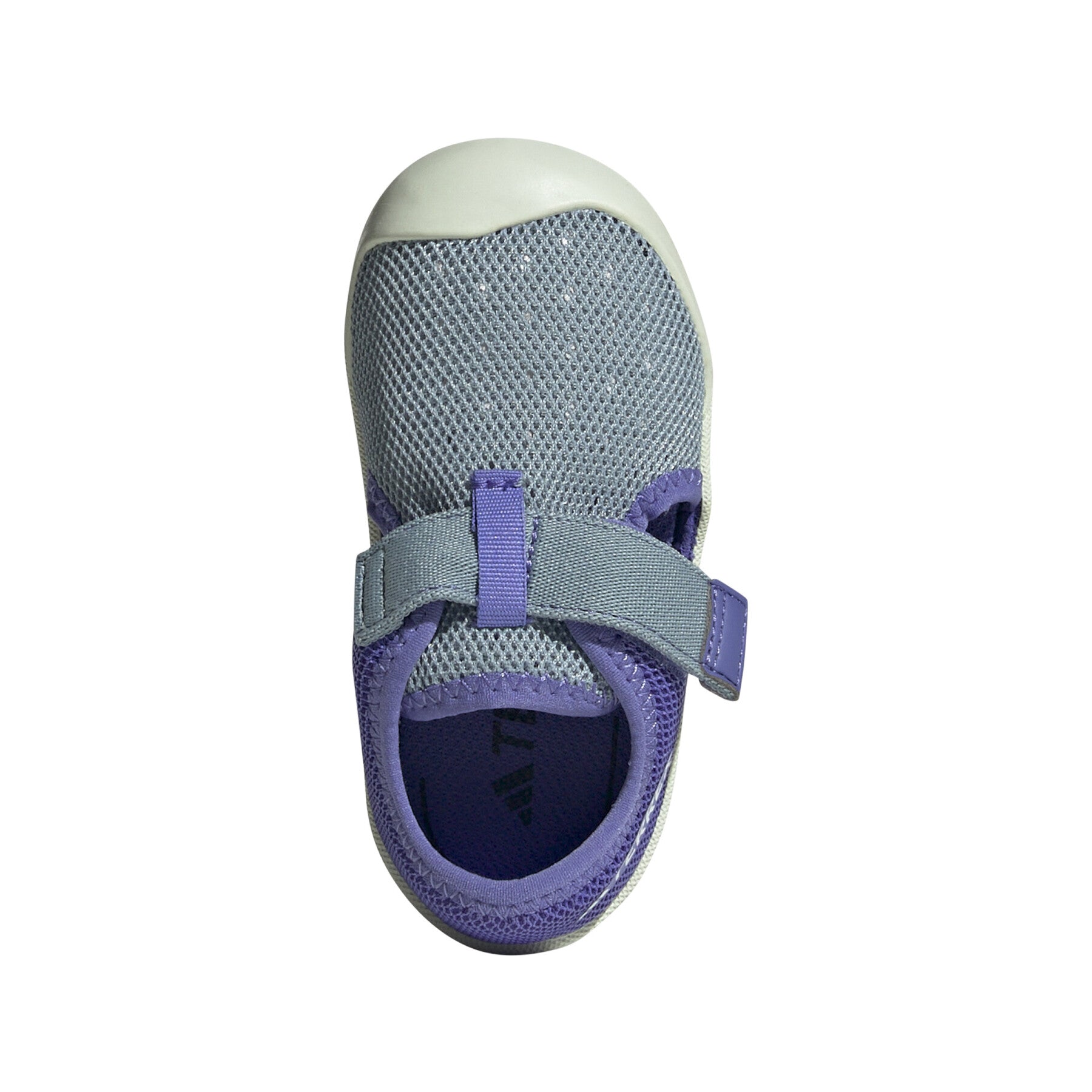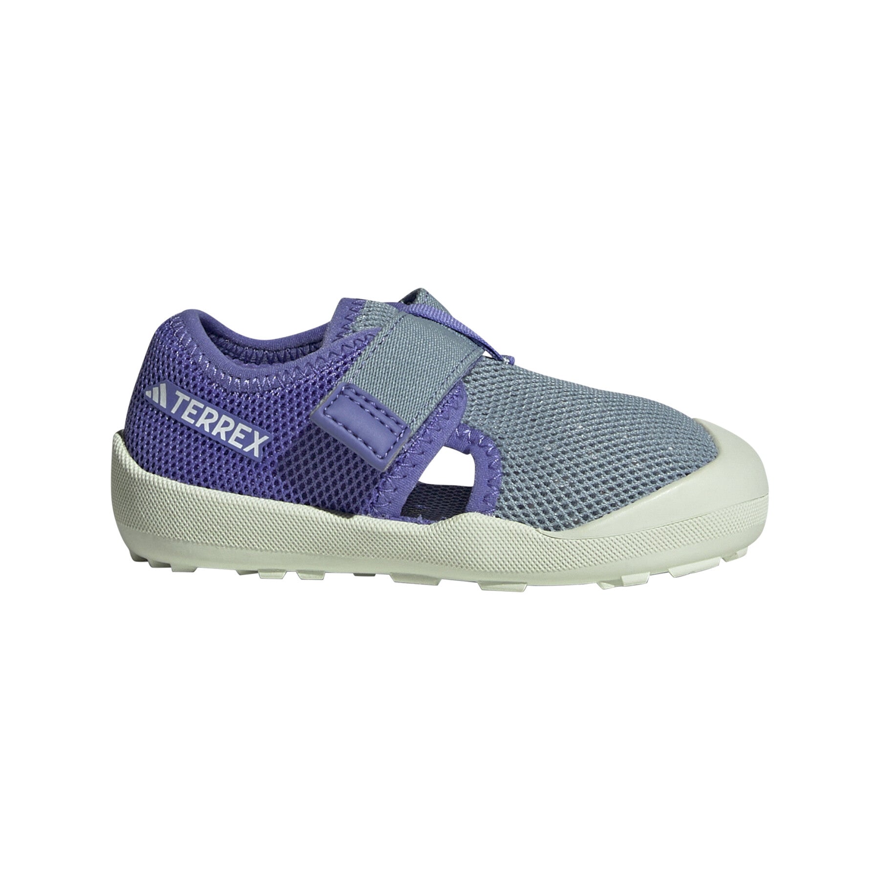 Estos primeros pasos son una verdadera aventura. La zapato Terrex Captain Toey adidas para bebés equipa a los pequeños exploradores. Diseñada para los pequeños pies en movimiento, cuenta con velcros prácticos para ponerla y quitarla fácilmente. La suela intermedia de EVA ofrece la máxima comodidad a los jóvenes aventureros. Cuando el camino se complica, la suela exterior Traxion con tacos garantiza un agarre máximo para explorar nuevos senderos con total confianza. Resistente y tenaz, como los más pequeños, este zapato está listo para enfrentar todos los desafíos.