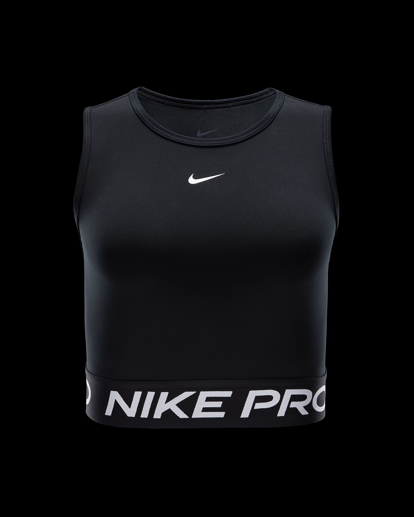 Esta camiseta de tirantes corta Nike Pro es ideal para entrenar. El tejido suave, ligero y elástico se seca con rapidez, por lo que resulta perfecta cuando el entrenamiento se intensifica. Con un ajuste ceñido al cuerpo y una suave banda elástica de jacquard en el dobladillo, aporta seguridad al alcanzar los objetivos.