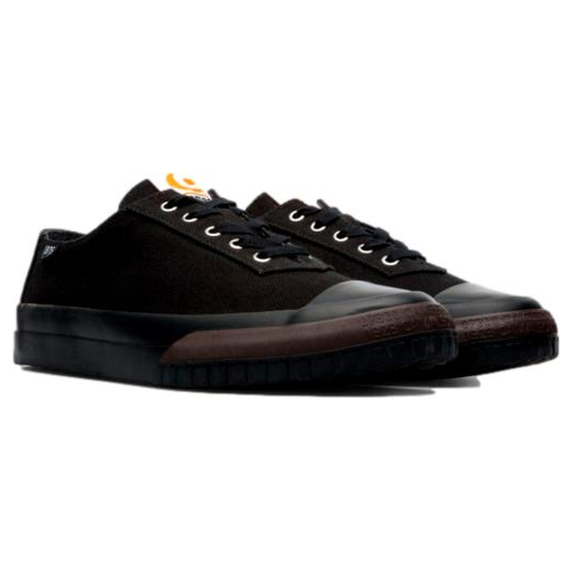 Sneaker de tejido natural de 90% de algodón en color negra para hombre. Suela negra y marrón de caucho 23% reciclado.