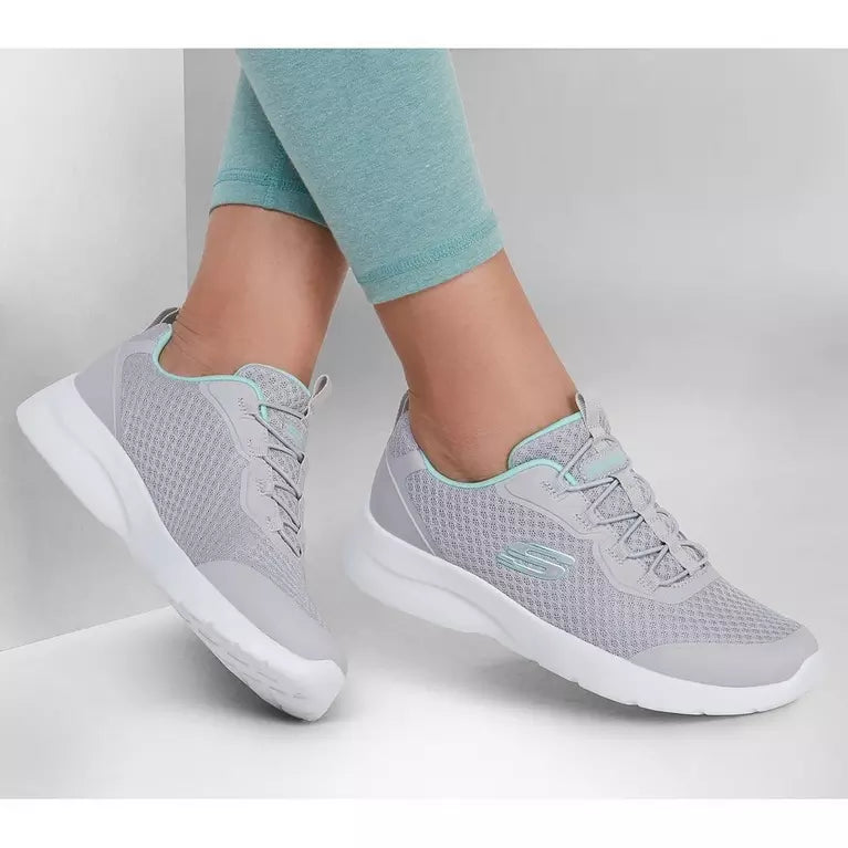Mantén el ritmo con elegancia y comodidad con el modelo deportivo Skechers Dynamight 2.0 - Social Orbit. Modelo sin cordones con la parte superior de malla y material sintético con cordones elásticos decorativos y una cómoda plantilla Skechers Memory Foam™.
