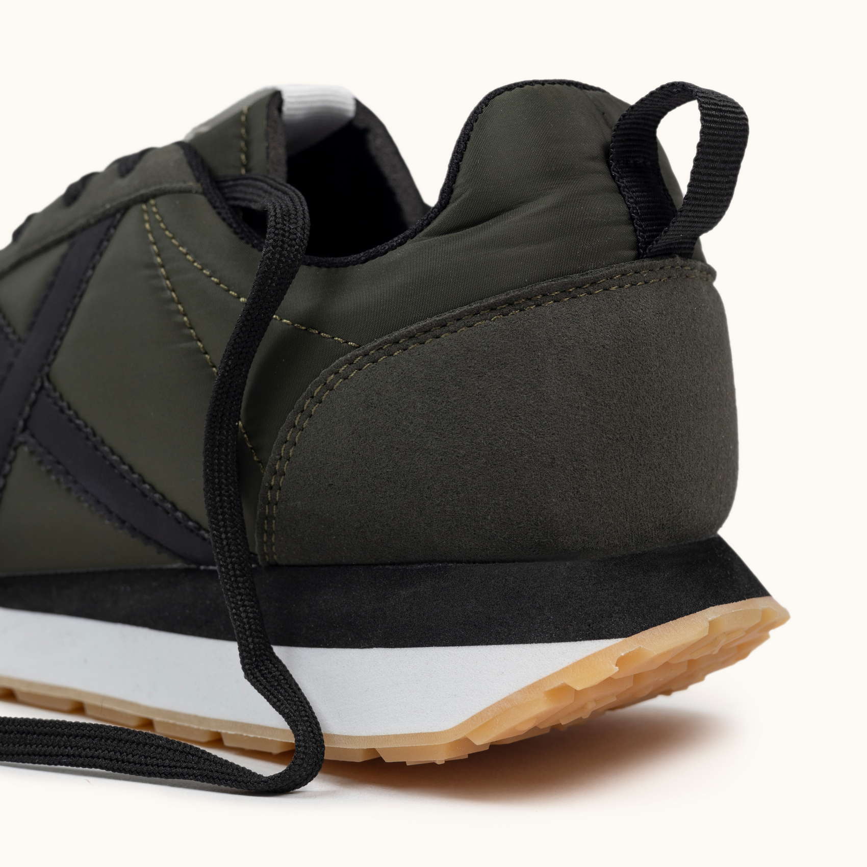 La RUSH combina puntera, carrillera y talonera en serraje sintético y microfibra, con una base de nylon técnico fino que aporta ligereza. Su media suela de EVA ofrece excelente amortiguación, mientras que el piso de goma asegura tracción y estabilidad, convirtiéndola en la opción ideal para l día a día.