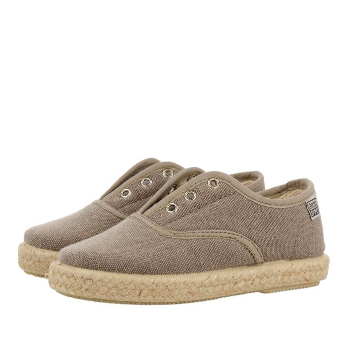 ¡Perfectas para este verano! Espadrilles grises tipo Oxford con corte en textil liso. La suela es de caucho natural vulcanizada con una bandeleta de yute en el canto. El corte es sin cordones y con elástico en el empeine para ajustar y facilitar la autonomía de los niños. La planta es acolchada, muy cómoda y además es antibacteriana y transpirable. El piso es de goma natural y el forro del tejido es 100% de algodón. De poliéster y PU con corte reciclado. Piso de goma natural, Forro de tejido de algodón 100%, Planta acolchada antibacteriana, Planta transpirable, 70% poliéster, 30% PU corte reciclado