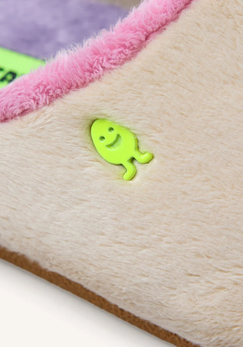 Comodidad para los momentos en el hogar. Zapatillas de estar por casa de pelo con dibujo y frase no me da la vida para más. Cuentan con plantilla de pelo, acolchada y extraíble.